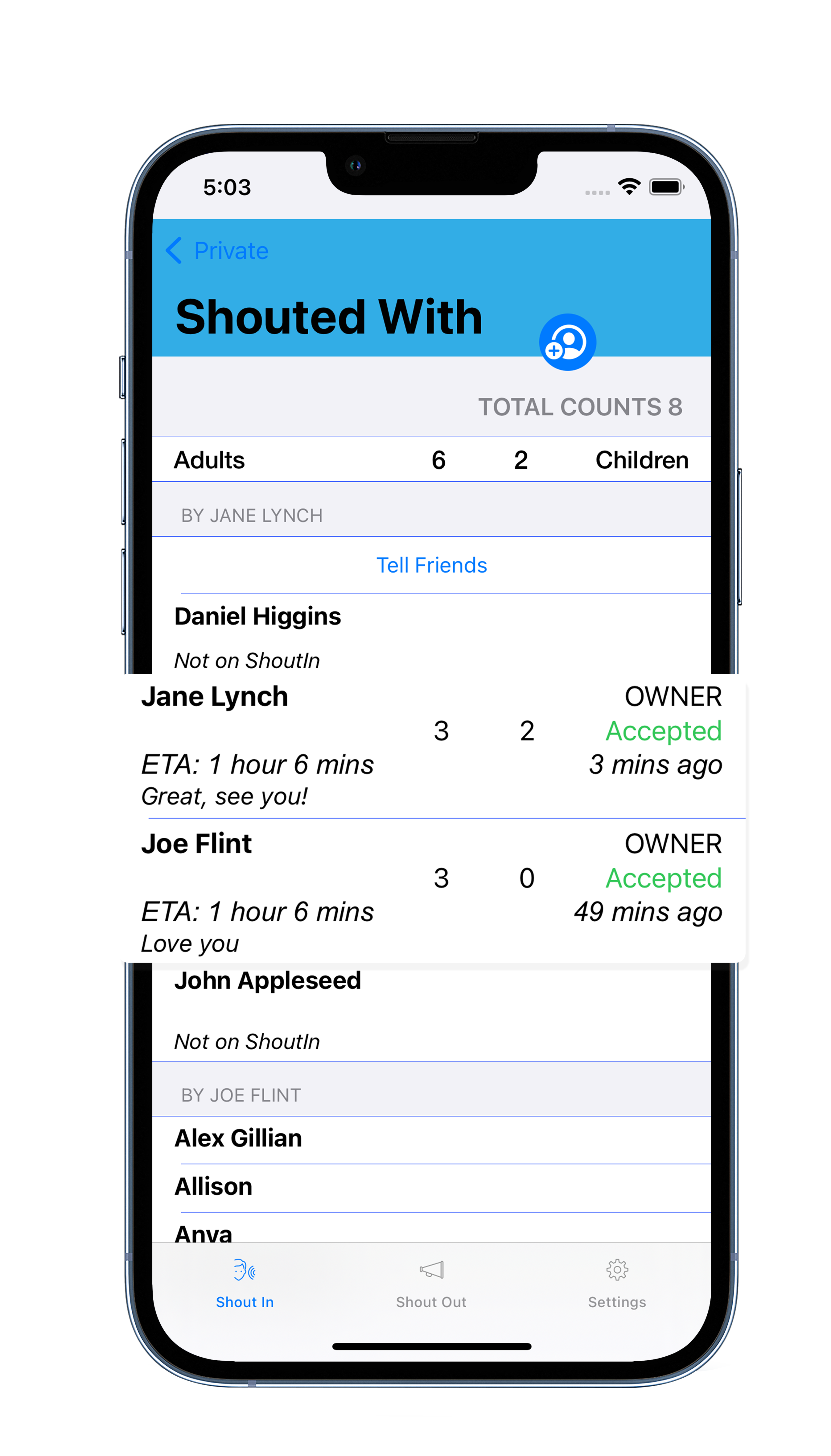 ShoutIn is your go-to app for spontaneous meetups or carefully planned gatherings. The best part? It's fast, simple, and all you need are phone numbers!